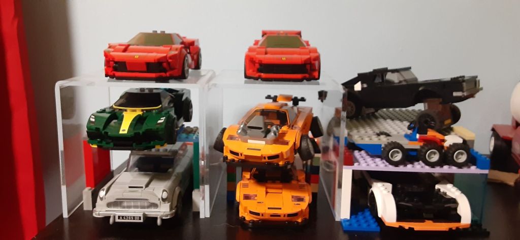 Both of the red cars are Ferrari’s and the two orange ones are Maclarens and the Grey one is an Astin Martin. The green one is a lotus the black one in the back is ghost riders Car it is squated. The white and black one is a Maclaren solus gt.